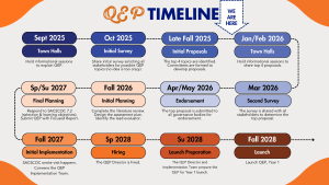 In January 2026, we will present videos and information about these proposals and over the course of the spring semester we will hold more town halls and meetings eventually cumulating in a college-wide vote for our next QEP!